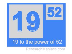 To find the answer, you multiply 19 by itself 52 times as follows: