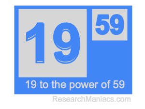 Here we will show you the answer to 19 to the power of 59 (nineteen to the power of fifty-nine) and explain how we got the answer.
