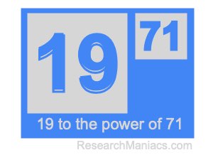 Here we will show you the answer to 19 to the power of 71 (nineteen to the power of seventy-one) and explain how we got the answer.