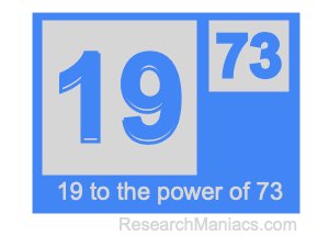Here we will show you the answer to 19 to the power of 73 (nineteen to the power of seventy-three) and explain how we got the answer.