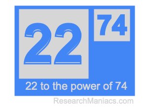 To find the answer, you multiply 22 by itself 74 times as follows: