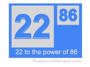 To find the answer, you multiply 22 by itself 86 times as follows: