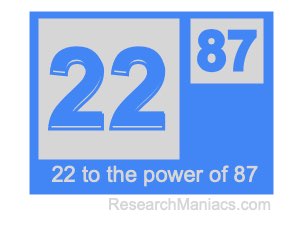To find the answer, you multiply 22 by itself 87 times as follows: