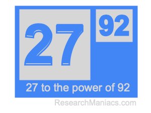 To find the answer, you multiply 27 by itself 92 times as follows: