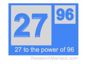 To find the answer, you multiply 27 by itself 96 times as follows: