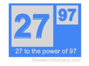 To find the answer, you multiply 27 by itself 97 times as follows: