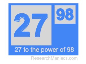 To find the answer, you multiply 27 by itself 98 times as follows: