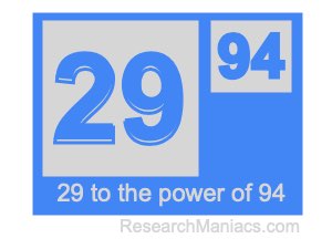 To find the answer, you multiply 29 by itself 94 times as follows: