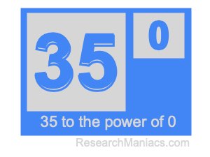 Here we will show you the answer to 35 to the power of 0 (35 to the power of zero) and explain how we got the answer.