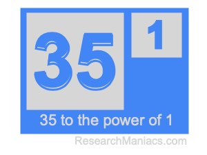 Note that 35 to the power of 1 is the same as 35 raised to 1. In xy, 35 is the base (x) and 1 is the exponent (y). Therefore, you can also write the problem and the answer as follows: