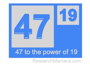 Here we will show you the answer to 47 to the power of 19 (forty-seven to the power of nineteen) and explain how we got the answer.