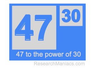Here we will show you the answer to 47 to the power of 30 (forty-seven to the power of thirty) and explain how we got the answer.