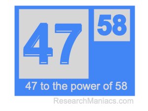 Here we will show you the answer to 47 to the power of 58 (forty-seven to the power of fifty-eight) and explain how we got the answer.