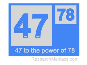 Here we will show you the answer to 47 to the power of 78 (forty-seven to the power of seventy-eight) and explain how we got the answer.