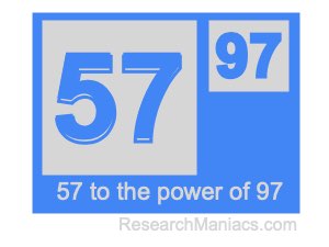 To find the answer, you multiply 57 by itself 97 times as follows: