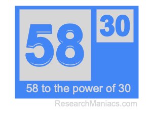 To find the answer, you multiply 58 by itself 30 times as follows: