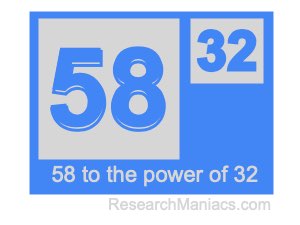 To find the answer, you multiply 58 by itself 32 times as follows: