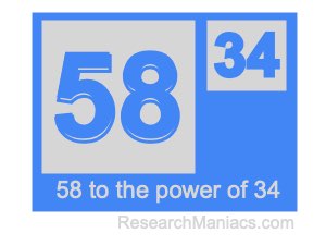 Here we will show you the answer to 58 to the power of 34 (fifty-eight to the power of thirty-four) and explain how we got the answer.