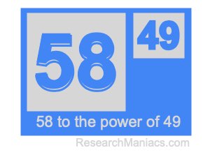 Here we will show you the answer to 58 to the power of 49 (fifty-eight to the power of forty-nine) and explain how we got the answer.