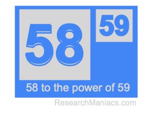Here we will show you the answer to 58 to the power of 59 (fifty-eight to the power of fifty-nine) and explain how we got the answer.