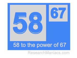 To find the answer, you multiply 58 by itself 67 times as follows: