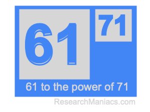 Here we will show you the answer to 61 to the power of 71 (sixty-one to the power of seventy-one) and explain how we got the answer.