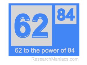 To find the answer, you multiply 62 by itself 84 times as follows: