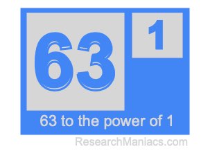 Here we will show you the answer to 63 to the power of 1 (sixty-three to the power of one) and explain how we got the answer.