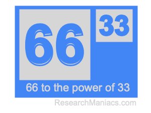 Here we will show you the answer to 66 to the power of 33 (sixty-six to the power of thirty-three) and explain how we got the answer.