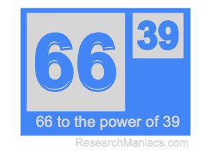 Here we will show you the answer to 66 to the power of 39 (sixty-six to the power of thirty-nine) and explain how we got the answer.