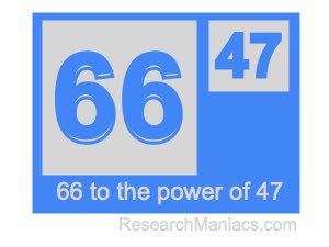 Here we will show you the answer to 66 to the power of 47 (sixty-six to the power of forty-seven) and explain how we got the answer.