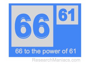 Here we will show you the answer to 66 to the power of 61 (sixty-six to the power of sixty-one) and explain how we got the answer.