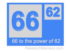 Here we will show you the answer to 66 to the power of 62 (sixty-six to the power of sixty-two) and explain how we got the answer.