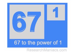 Here we will show you the answer to 67 to the power of 1 (sixty-seven to the power of one) and explain how we got the answer.