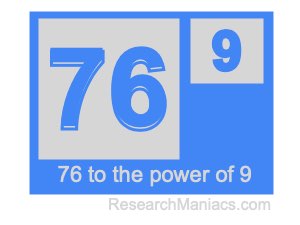 To find the answer, you multiply 76 by itself 9 times as follows:
