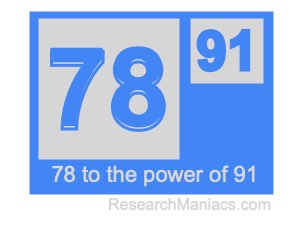 Here we will show you the answer to 78 to the power of 91 (seventy-eight to the power of ninety-one) and explain how we got the answer.