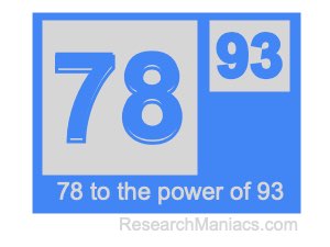 Here we will show you the answer to 78 to the power of 93 (seventy-eight to the power of ninety-three) and explain how we got the answer.