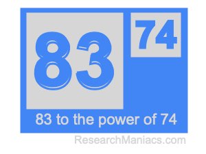 Here we will show you the answer to 83 to the power of 74 (eighty-three to the power of seventy-four) and explain how we got the answer.