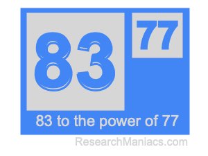 Here we will show you the answer to 83 to the power of 77 (eighty-three to the power of seventy-seven) and explain how we got the answer.