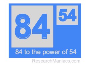 To find the answer, you multiply 84 by itself 54 times as follows: