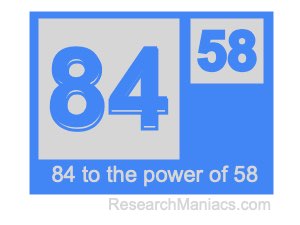 Here we will show you the answer to 84 to the power of 58 (eighty-four to the power of fifty-eight) and explain how we got the answer.