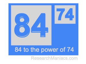 Here we will show you the answer to 84 to the power of 74 (eighty-four to the power of seventy-four) and explain how we got the answer.