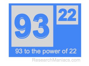 Here we will show you the answer to 93 to the power of 22 (ninety-three to the power of twenty-two) and explain how we got the answer.