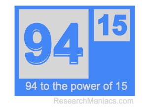 To find the answer, you multiply 94 by itself 15 times as follows: