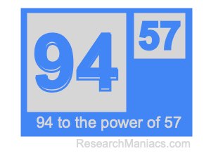 Here we will show you the answer to 94 to the power of 57 (ninety-four to the power of fifty-seven) and explain how we got the answer.