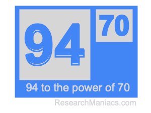 To find the answer, you multiply 94 by itself 70 times as follows: