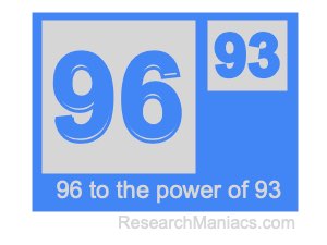 Here we will show you the answer to 96 to the power of 93 (ninety-six to the power of ninety-three) and explain how we got the answer.