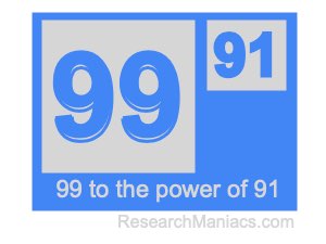 Here we will show you the answer to 99 to the power of 91 (ninety-nine to the power of ninety-one) and explain how we got the answer.