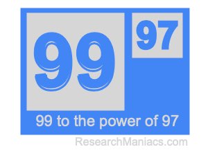 Here we will show you the answer to 99 to the power of 97 (ninety-nine to the power of ninety-seven) and explain how we got the answer.