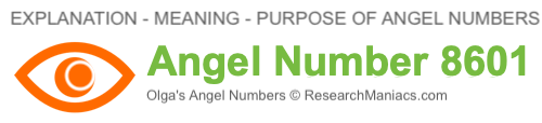 Olga's interpretations and opinons about the Angel Number 8601 is copyrighted by Research Maniacs and may not be copied or duplicated in any way, shape or form without written authorization from Research Maniacs.